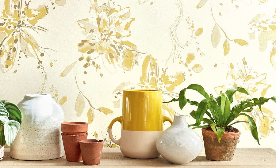 Un floral llamativo de gran tamaño que tiene un sentido pictórico puntuado por salpicaduras metálicas. Una interpretación del visillo Gracia de la colección de telas Artesia, Gracia Wallcovering replica favorablemente la profundidad fluida en tono y movimiento del arte original pintado a mano.