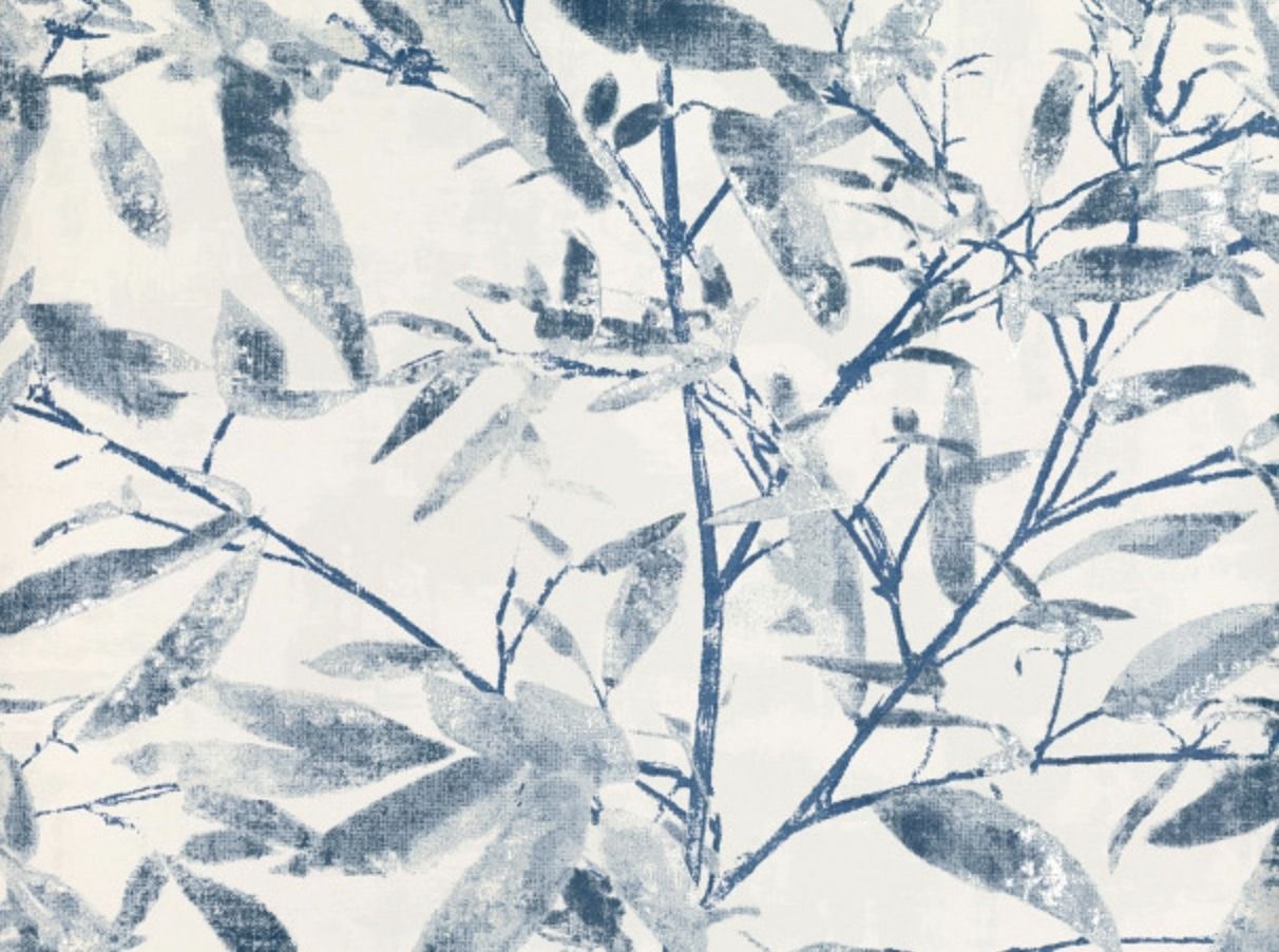 Una escena llamativa de bambú exótico, Sumba combina texturas pictóricas delicadas con toques de metálico sofisticado.
