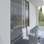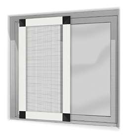 Diseñada para deslizarse sobre la propia guía de la ventana de aluminio. Sus perfiles están montados con escuadras vistas de PVC. Su función de corredera permite deslizar las dos hojas de cristal hacia un lado y la mosquitera al contrario, consiguiendo ventilación en la estancia.