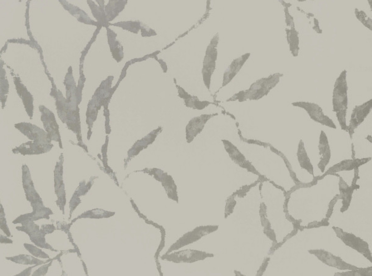 Un estampado metálico envejecido da una apariencia finamente tejida a este diseño sencillo de follaje inspirado en los perales elegantes de la casa señorial Chatsworth House.