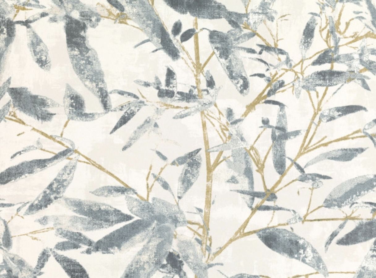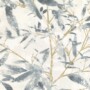 Una escena llamativa de bambú exótico, Sumba combina texturas pictóricas delicadas con toques de metálico sofisticado.